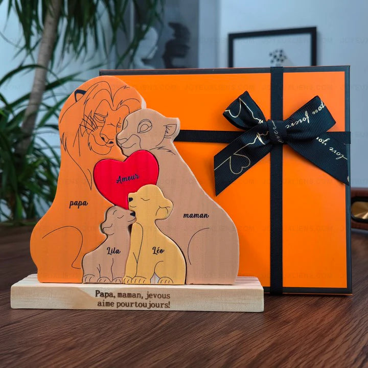 Puzzle personnalisé en bois Famille de lions – Décoration et cadeau personnalisés
